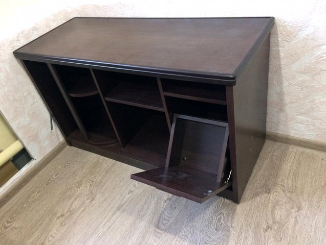 материал – ЛДСП, МДФ, искусственная кожа покрытие – ламинат толщина столешниц – 58 мм декоративный профиль столешницы – МДФ, 70 мм кромка столешниц – ПВХ